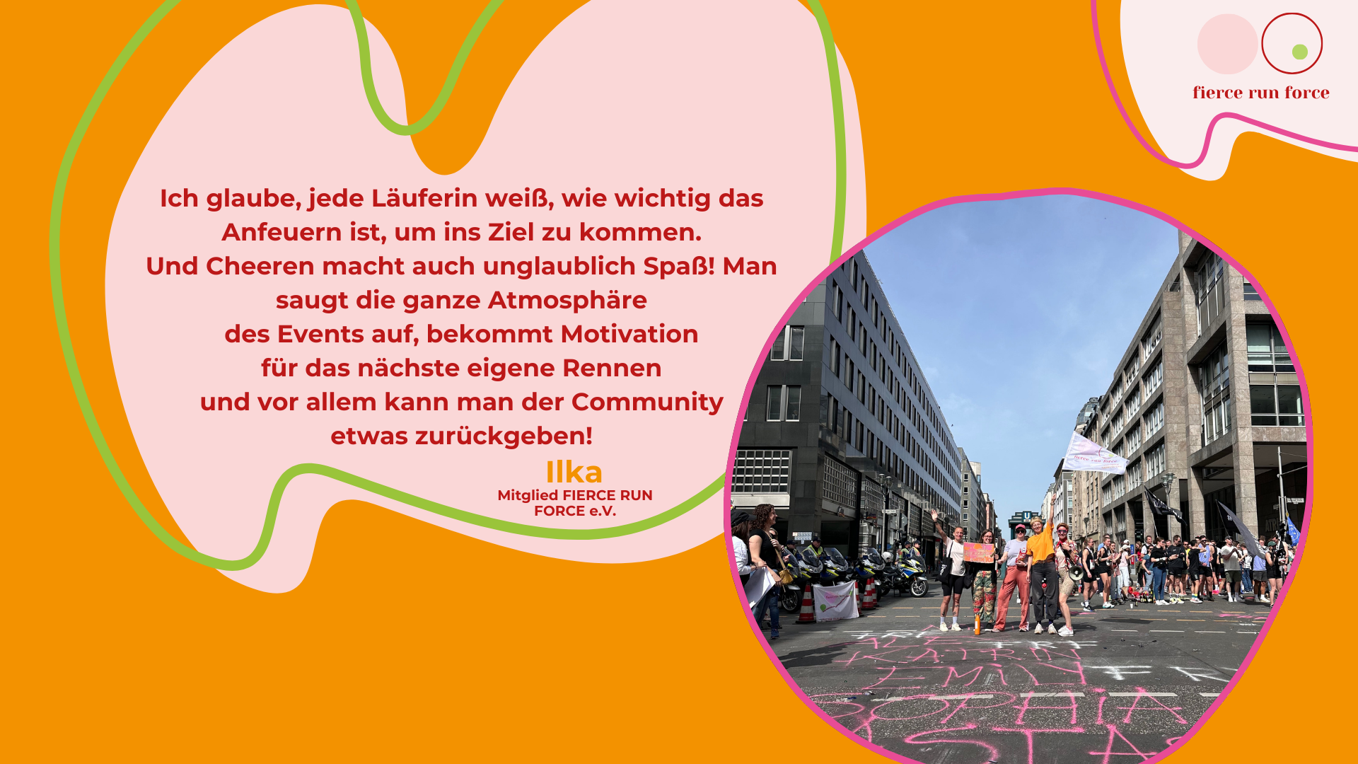 Auch das Cheering-Team des FIERCE RUN FORCE e.V. positionierte sich frühzeitig und hochmotiviert, denn die Kurve bei Kilometer 17, die sollte beben! Und mit ordentlich (Wo)manpower, Sprühkreide, Ratschen und Megafon bewaffnet, wurden alle Läufer*innen gebührend angefeuert. Dieses Gefühl von Gemeinschaft und uneingeschränktem Support ist es, wofür wir laufen, wofür wir miteinander fleißig unser Lauf-ABC absolvieren, Intervalle rocken und uns durch Steigerungsläufe schwitzen. Denn auch wenn es am Ende an jeder und jedem selbst liegt, für einen Trainingslauf vor die Tür zu gehen und immer wieder einen Fuß vor den anderen zu setzen, ziehen die Kilometer so viel leichter vorbei, wenn deine Lauffreundschaft, dein Verein und deine Community dich schieben.