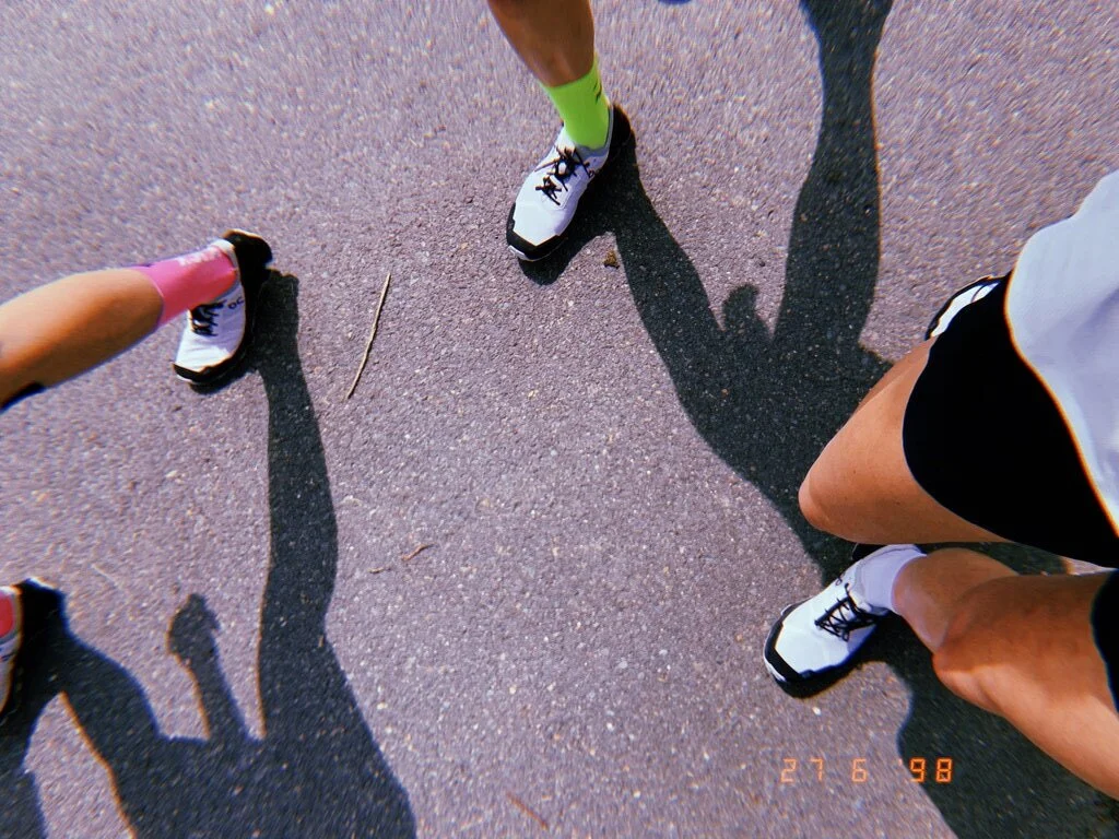 Schon als der Startschuss fiel und damit auch die Masken von den Gesichtern gerissen wurden, waren Isi und Steffi schnell außer Sichtweite. Ziemlich bald ging es steil berghoch (das würde hart werden…). Dann eine lange kurvenreiche Strecke über Stock, Stein und Wurzel durch den Wald. Eine richtige Rennstrecke, die normalerweise nur Mountainbike-Fahrer*innen runterbrettern. Das war definitiv der FUN-Part des sogenannten FUN-TRAILS. Irgendwie fühlte es sich mehr nach Stolpern als nach Rennen an, aber das machte wohl den Spaß aus. Hin und wieder fühlte es sich aber auch nach fliegen an. Einmal abgehoben, ging es darum, sicher wieder zwischen Wurzeln und Felsen zu landen.
