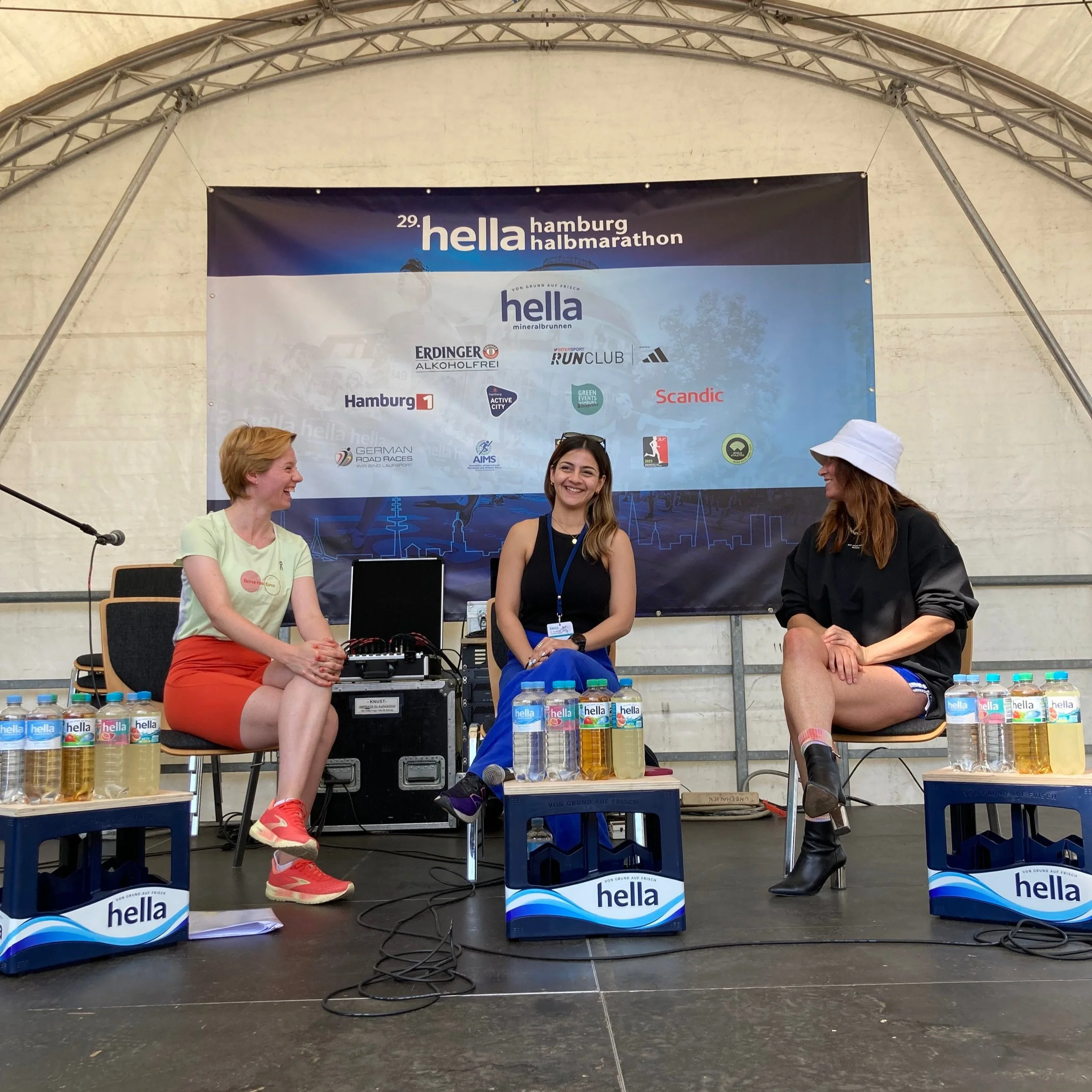 Saba Shakalio erläuterte ihre Sichtweise auf die Gender Gap im Laufsport. Es wurde deutlich, dass es noch viel Raum für Verbesserungen gibt, um Frauen eine gerechte Teilhabe am Laufsport zu ermöglichen. Ava Carstens ergänzte die Diskussion und teilte ihre Erfahrungen zur Diversität innerhalb der Running Community in Hamburg. Es wurden wichtige Themen wie Toiletten- und Umkleidesituationen sowie die Schaffung von sicheren Räumen angesprochen.