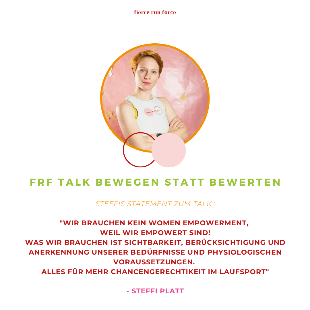 Die Veranstaltung begann mit einer herzlichen Begrüßung durch Steffi Platt, der Gründerin des ersten Frauenlaufsportvereins mit zyklusorientiertem Training, FIERCE RUN FORCE (FRF). Steffi stellte den Zweck des Vereins vor, der sich für Chancengerechtigkeit, Sichtbarkeit von Frauen und Frauenrechten einsetzt. Neben dem Lauftraining widmet sich der Verein auch der Aufklärung im Bereich Frauengesundheit. Das Ziel ist es, Frauen zu ermutigen, das Laufen für sich zu entdecken und dabei ihre körperlichen Bedürfnisse und Voraussetzungen zu berücksichtigen.